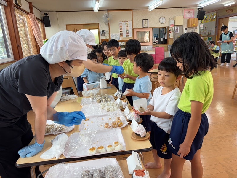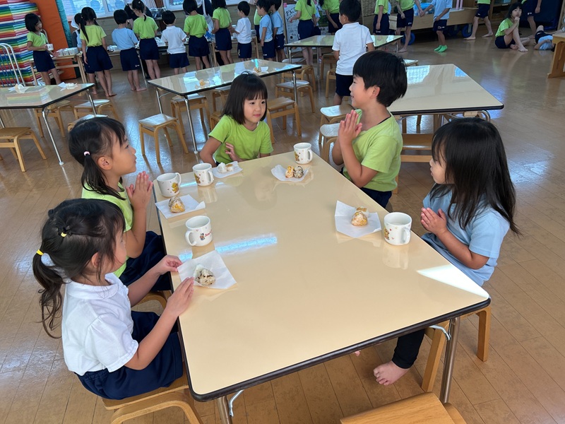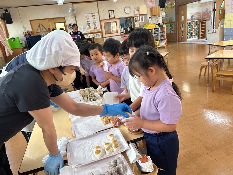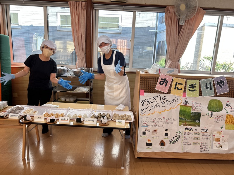 給食の先生たちが、「今年も子どもたちにいろんなおにぎりを食べさせてあげたい」と、おやつの時間に